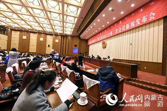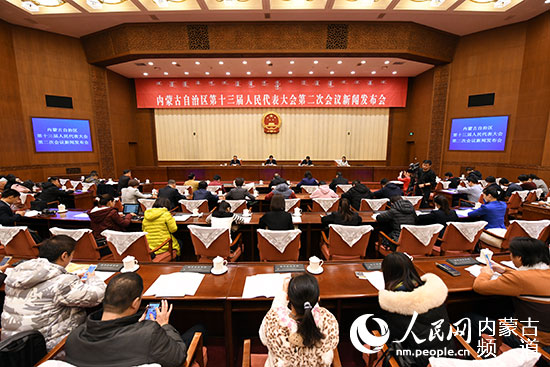 內蒙古自治區(qū)十三屆人大二次會議新聞發(fā)布會現(xiàn)場。