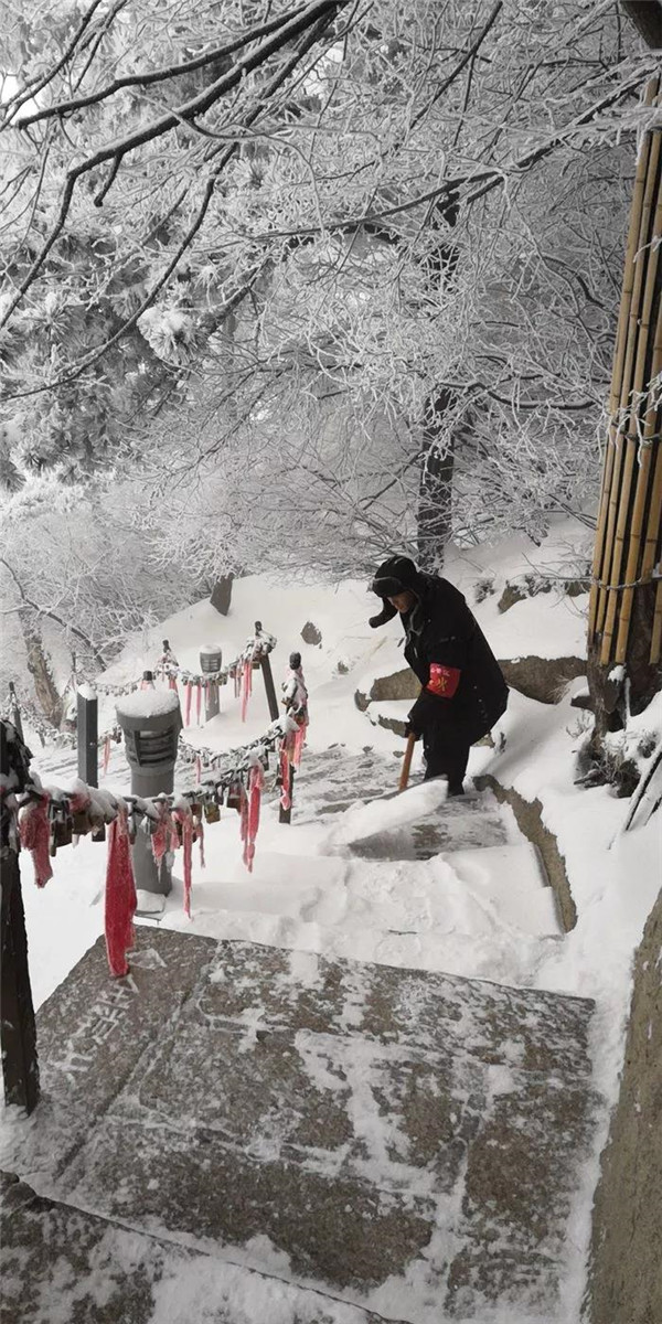 1月29日至31日,華山景區(qū)迎來(lái)降雪天氣,華旅集團(tuán)各單位迅速組織工作人員對(duì)路面冰雪進(jìn)行了清理,24小時(shí)不間斷地進(jìn)行掃雪除冰和應(yīng)急值守工作,有效降低了雨雪天氣對(duì)景區(qū)旅游秩序的不利影響。