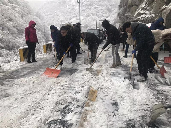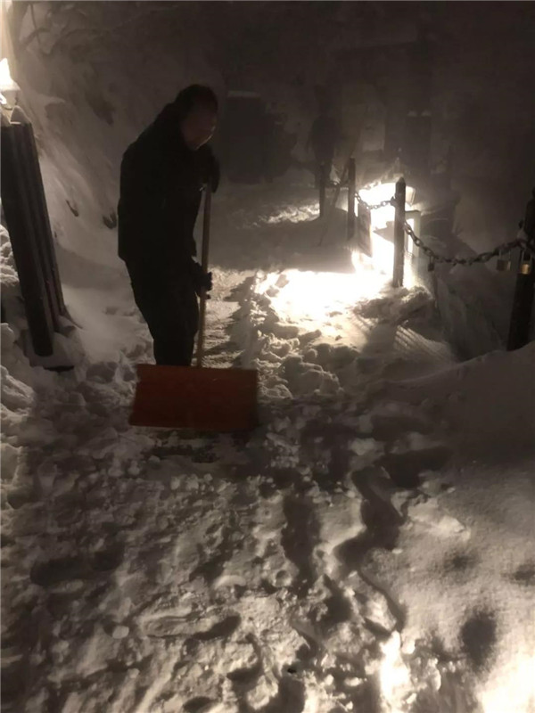 主峰區(qū)工作人員晝夜24小時(shí)不間斷清理積雪