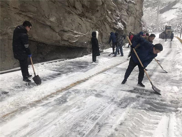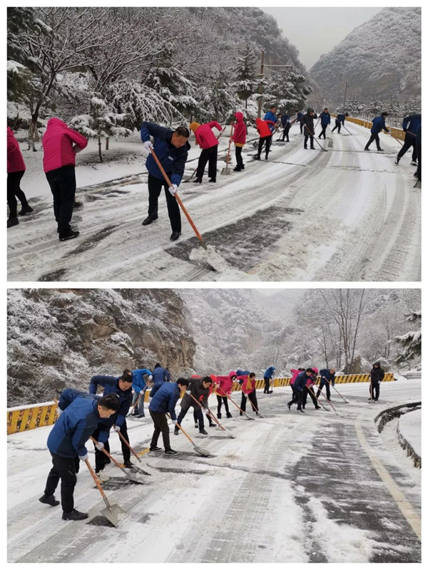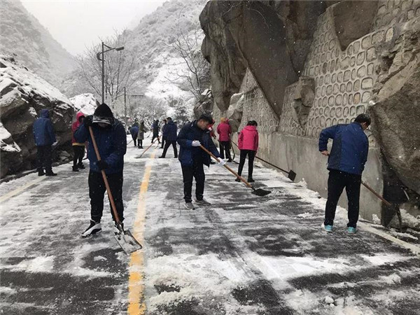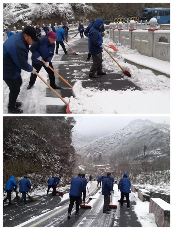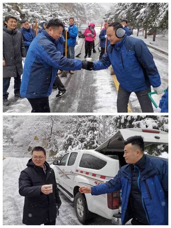1月31日凌晨景區(qū)出現(xiàn)強(qiáng)降雪天氣,道路積雪嚴(yán)重影響行車(chē)安全。華旅集團(tuán)第一時(shí)間多渠道發(fā)布景區(qū)推遲運(yùn)營(yíng)時(shí)間的信息,并向游客做好解釋工作,同時(shí)號(hào)召集團(tuán)各部室、各單位迅速組織人員赴進(jìn)山公路進(jìn)行掃雪除冰,經(jīng)過(guò)三個(gè)小時(shí)的全力清掃,東線(xiàn)進(jìn)山公路積雪清理完畢,景區(qū)在短時(shí)間內(nèi)恢復(fù)運(yùn)營(yíng),西線(xiàn)索道進(jìn)山公路及華山峪區(qū)域不斷加大清掃力度,盡力實(shí)現(xiàn)景區(qū)全線(xiàn)貫通。
