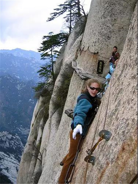 位于陜西省西安市以東120公里的華山是中華五岳之一,也是中國(guó)最受歡迎的旅游勝地。它以美麗的自然景色和古老的道教寺院而聞名,但華山最著名的還是那直上山巔的驚險(xiǎn)山路。華山號(hào)稱“奇險(xiǎn)天下第一山”,它那難以置信的驚險(xiǎn)道路使得華山足以自豪地配得上這個(gè)榮譽(yù)。如果你計(jì)劃挑戰(zhàn)它,你應(yīng)當(dāng)記住,華山更適合于徒步攀爬,這樣你就不需要特殊的裝備,只是你、大山或者再加一雙手套而已。