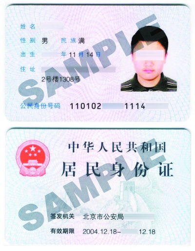 中國(guó)居民身份證樣本
