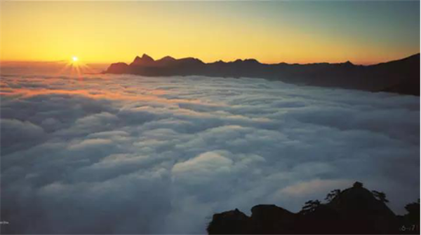 走完蒼龍嶺那長(zhǎng)長(zhǎng)的石階,揮汗如雨,看眼前浮現(xiàn)出平坦的五云峰,夕陽(yáng)照射,霧光輝映。