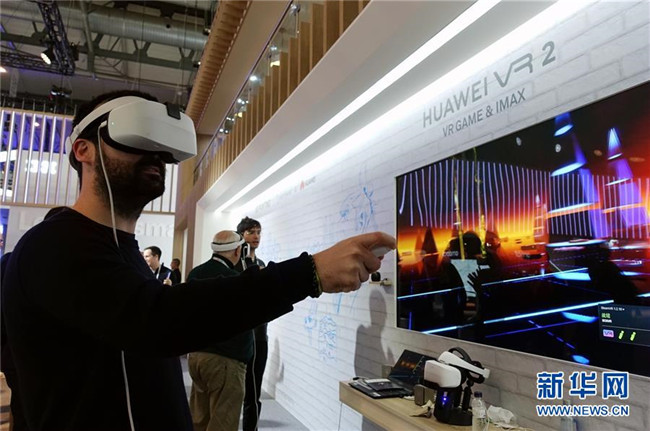 2月28日,在西班牙巴塞羅那,一名男子在世界移動通信大會上的華為展區(qū)體驗(yàn)虛擬現(xiàn)實(shí)(VR)游戲。 新華社記者郭求達(dá)攝