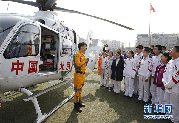 活動現(xiàn)場還設(shè)置了應(yīng)急救援演練,活動安排一架專業(yè)航空醫(yī)療救援直升飛機(jī)、兩輛救護(hù)車和一輛安全地震模擬車參與。