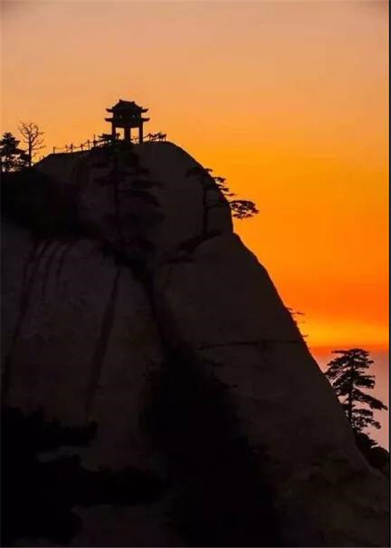 此時(shí),但見(jiàn)夜幕自東方悄然隱退,晨曦初露,漸漸霞光瑰麗,云源奔涌。瞬間,一輪火球噴薄而出,繼而光芒四射,氣象萬(wàn)千,整個(gè)世界大放光明,游人身心為之一振。待云霧散盡,蒼松翠柏,則更加清麗悅目,美妙神奇。故而,游名山者必登華山,登華山者必觀(guān)日。