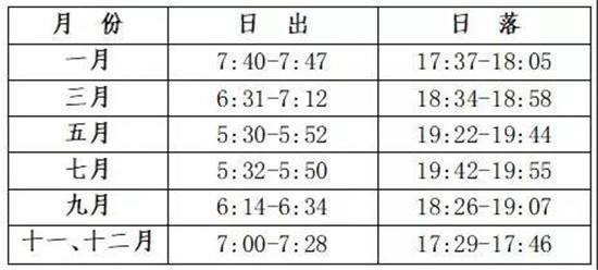 華山日出、日落時(shí)間