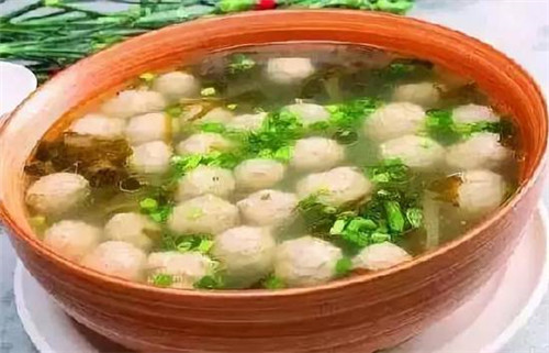 這個生汆丸子,地方人都愛吃北十字那的,自我感覺稍微咸點(diǎn),倒是比較鐘情于東興路那家丸子,減淡適中,鍋盔饃也好吃。