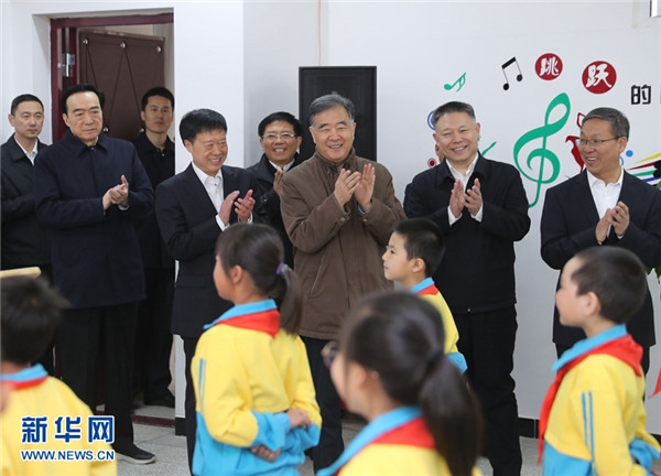 中共中央政治局常委、全國政協(xié)主席汪洋近日在新疆調(diào)研。這是3月22日,汪洋來到新疆生產(chǎn)建設(shè)兵團第三師圖木舒克市44團中學調(diào)研。 新華社記者劉衛(wèi)兵攝