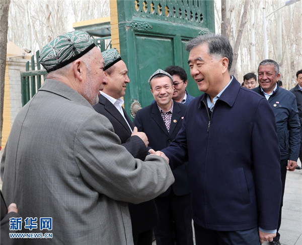 中共中央政治局常委、全國政協(xié)主席汪洋近日在新疆調(diào)研。這是3月21日,汪洋在喀什市艾提尕爾清真寺進行調(diào)研。 新華社記者劉衛(wèi)兵攝