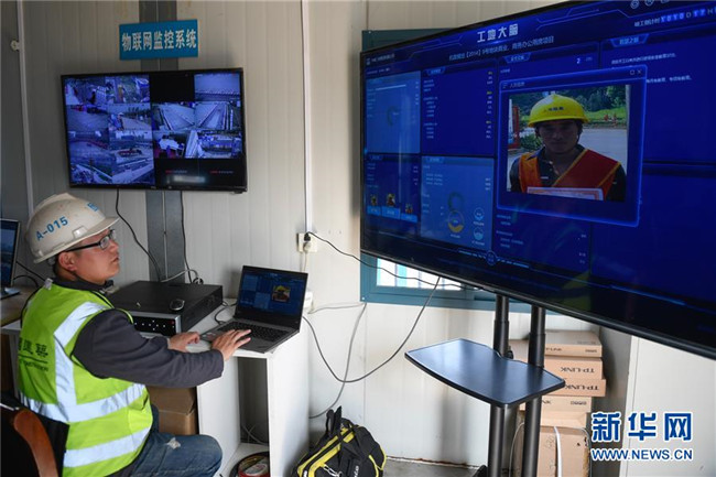3月26日,工作人員在“浙江智慧之門(mén)”項(xiàng)目工地察看“工地大腦”的實(shí)時(shí)數(shù)據(jù)。據(jù)了解,“工地大腦”匯總了人員、設(shè)備、物料、進(jìn)度、環(huán)境等要素。新華社記者黃宗治攝