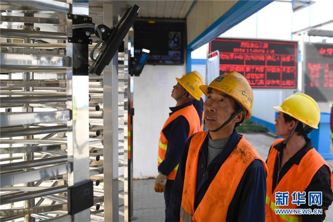 3月26日,工人在實(shí)名制通道使用人臉識(shí)別技術(shù)進(jìn)入“浙江智慧之門(mén)”項(xiàng)目工地。新華社記者黃宗治攝