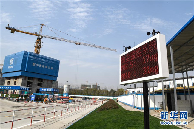 這是3月26日在“浙江智慧之門(mén)”項(xiàng)目現(xiàn)場(chǎng)拍攝的揚(yáng)塵監(jiān)控系統(tǒng)顯示屏。據(jù)了解,揚(yáng)塵超過(guò)閥值就能自動(dòng)啟動(dòng)噴淋設(shè)備,給工地降塵。新華社記者黃宗治攝