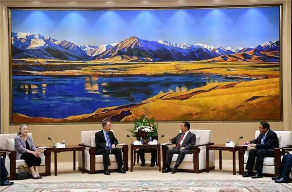 3月29日—3月30日,2019潘基文可持續(xù)發(fā)展大講壇走進敦煌系列活動成功舉辦。甘肅省委副書記、省長唐仁健,3月29日在敦煌國際酒店會見了博鰲亞洲論壇理事長、聯(lián)合國第八任秘書長潘基文攜夫人柳淳澤一行。