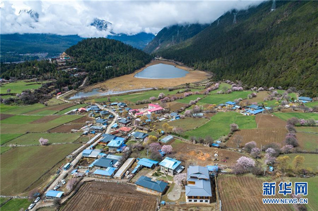 這是波密縣古鄉(xiāng)嘎朗村的田園風(fēng)光(4月2日無人機(jī)拍攝)。新華社記者 李鑫 攝