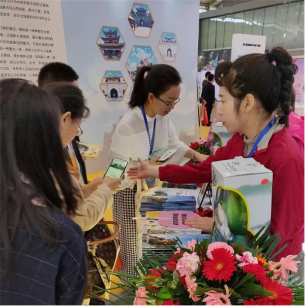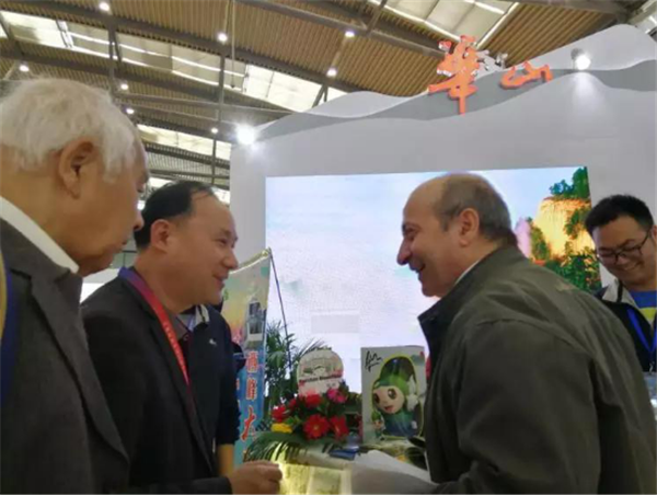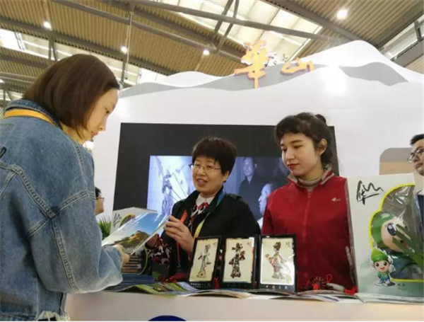 會上,華山管委會常務副主任郭文平、華山管委會黨工委委員張永江、華山管委會文物旅游處副處長王領娣一行來到展臺視察工作,并在現場與市民互動,郭文平主動當起了華山講解員,為前來咨詢的市民答疑解惑,宣傳華山,贈送禮物。