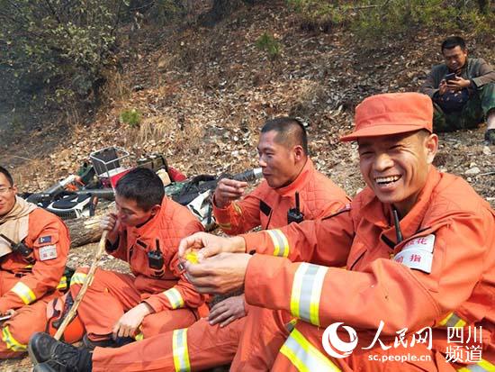 4月8日上午6時(shí),鹽邊大隊(duì)指戰(zhàn)員奉命趕到東線山梁處置火情。下午兩點(diǎn)多,簡單吃了幾口干糧的指戰(zhàn)員暫時(shí)進(jìn)行休整。