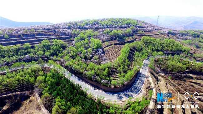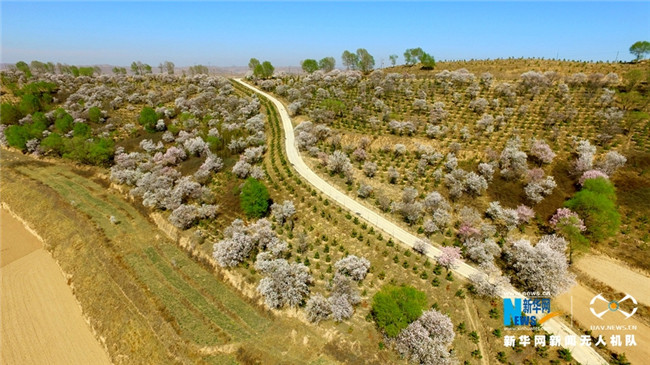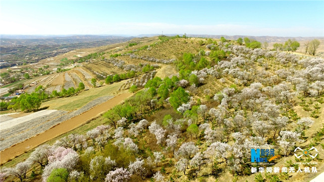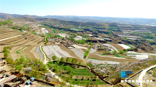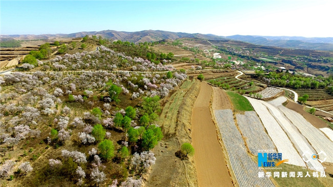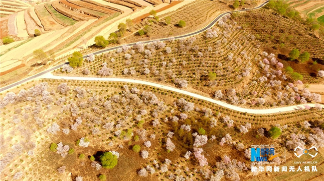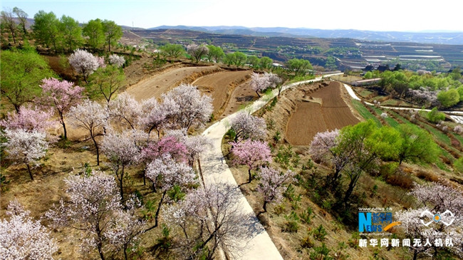 原標(biāo)題:【飛“閱”中國】甘肅定西:黃土塬上別樣景 千樹杏花笑春風(fēng)