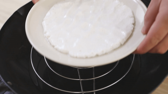 12.蒸好的糯米面要用保鮮膜蒙住盤子,防止表面變干,晾至溫?zé)帷?br />