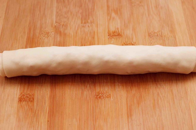 13.從面皮的一斷開(kāi)始卷起來(lái),一直卷到底。