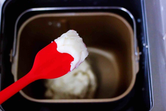 3.一個(gè)和面程序后,加入豬油再來(lái)一個(gè)和面程序,加了豬油的花卷,味道更香濃,花卷更蓬松柔軟筋道。