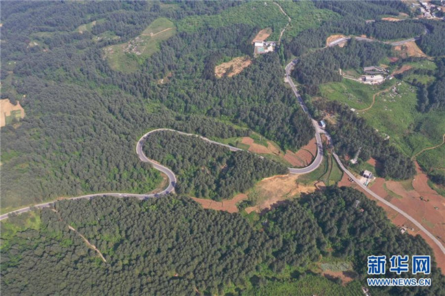 這是4月27日拍攝的貴州省畢節(jié)市赫章縣平山國有林場一角(無人機拍攝)。新華社記者 楊楹 攝