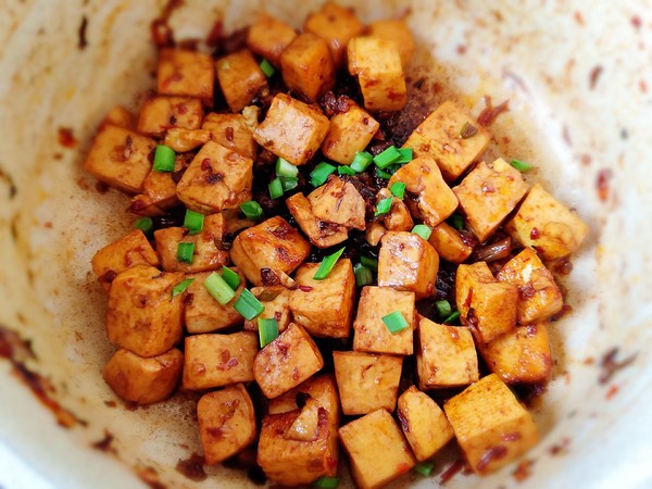 豆腐250克 蔥花10克 鮑魚干貝xo醬2勺 生抽1湯匙 老抽0.5湯匙