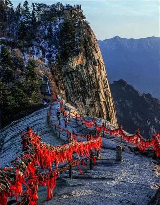 如今的華山險峻依然,但已經(jīng)開鑿了上下兩條棧道,所以觀感上不變,但行走已經(jīng)沒有多少難度了。