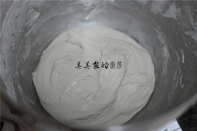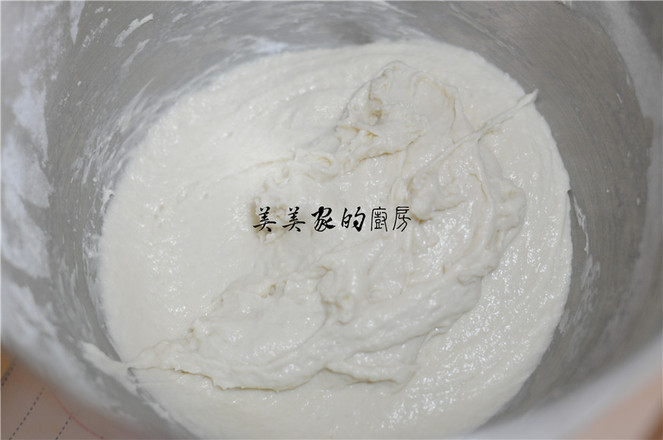 3.用筷子和成細(xì)膩、濕潤(rùn)的面團(tuán)。蓋上保鮮膜,將面團(tuán)醒發(fā)20分鐘。