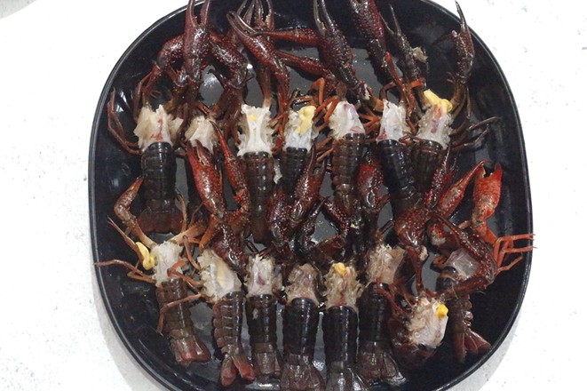 2.小龍蝦去頭后用小刷子沾鹽水刷干凈。