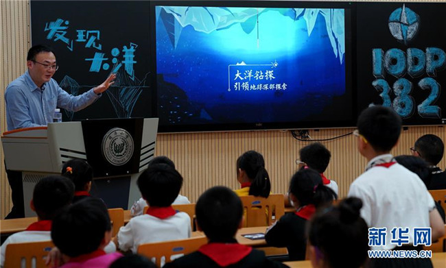 當(dāng)日,上海同濟(jì)小學(xué)開展了一堂科普直播課。正在南極開展大洋鉆探的中外科學(xué)家通過視頻連線直播的方式,向該校四年級(jí)學(xué)生介紹在南極海域開展大洋鉆探的科考生活和科學(xué)意義。