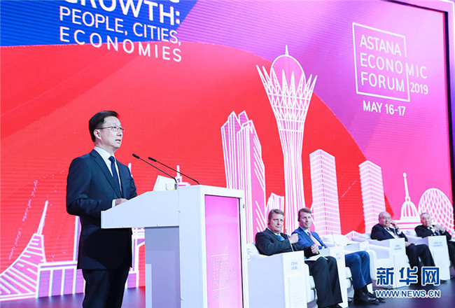 5月16日,中共中央政治局常委、國務(wù)院副總理韓正出席在努爾蘇丹舉行的第十二屆阿斯塔納經(jīng)濟(jì)論壇。 新華社記者 劉彬 攝