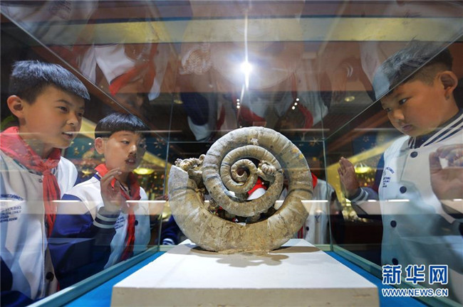 5月16日,學(xué)生們在青島貝殼博物館了解鸚鵡螺構(gòu)造。新華社發(fā)(王海濱 攝)