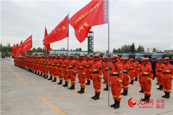 “新疆作為拱衛(wèi)祖國西北邊陲生態(tài)安全的最后一道防線,森林面積802.23萬公頃,森林覆蓋率僅為4.87%,生態(tài)環(huán)境十分脆弱。組織‘百車千人萬里行’大練兵、大勘察、大宣傳活動,一方面是把隊(duì)伍拉到陌生環(huán)境和任務(wù)一線,全面檢驗(yàn)隊(duì)伍能否經(jīng)受得住長途奔襲、連續(xù)作戰(zhàn)的考驗(yàn),是否能夠在野外條件下拉得出、供得上、打得贏,打牢隊(duì)伍能力素質(zhì)基礎(chǔ);另一方面是準(zhǔn)確收集掌握全疆任務(wù)數(shù)據(jù),有效提升全民防火意識,切實(shí)為保護(hù)新疆生態(tài)安全作出積極貢獻(xiàn)。”新疆森林消防總隊(duì)總隊(duì)長韓九龍說。