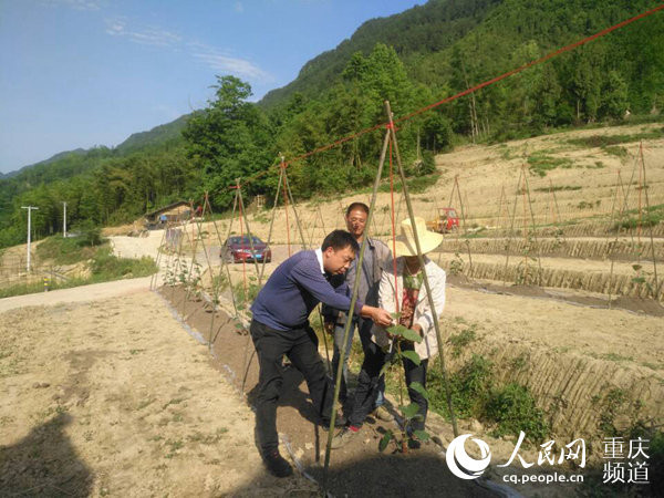 “不著急,肥料鋪均勻再下苗。”萬州區(qū)果樹站副站長(zhǎng)周偉,正手把手教向紅兵栽種果樹。