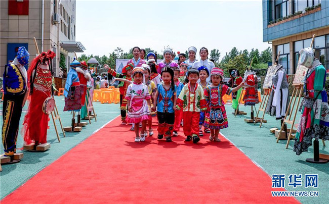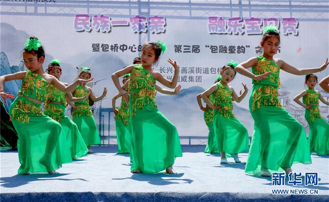 當(dāng)日,浙江省長興縣包橋幼兒園舉辦“民族一家親”活動(dòng),師生家長一同表演舞蹈,展示民族服裝,迎接即將到來的“六一”兒童節(jié)。據(jù)悉,該幼兒園一半以上的孩子來自省外,其中不少是少數(shù)民族兒童。 新華社記者 徐昱 攝