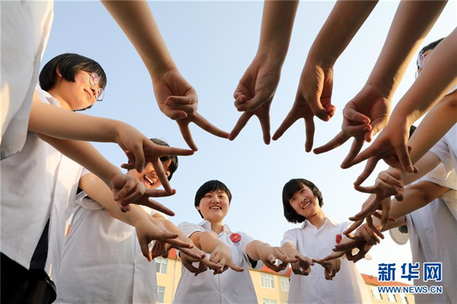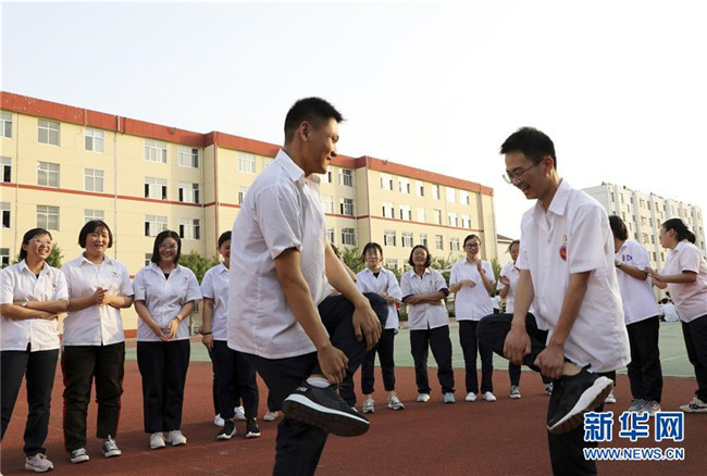 高考臨近,山東省濱州市博興縣第三中學組織高三學生參加趣味游戲,幫助學生放松心情,迎接高考。新華社發(fā)(陳彬 攝)