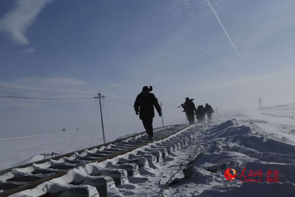 “我們是2018年11月進(jìn)入風(fēng)區(qū)作業(yè)的,這也是我第一次在暴風(fēng)雪中施工。在風(fēng)區(qū),六七級(jí)風(fēng)是家常便飯,風(fēng)雪打得臉生疼不說,新鋪的鋼軌經(jīng)常被移雪掩埋,鋪軌列車動(dòng)彈不得,只能人工清雪,清理一步走一步,被埋沒的鐵軌剛清完轉(zhuǎn)眼又被雪埋了。”葉輝說,“今年1月底的一個(gè)暴風(fēng)雪天,接送上下班的列車?yán)г诹税肼罚穼?shí)施了交通管制,施工隊(duì)被困工地。大家互相鼓勁,在風(fēng)雪中艱難跋涉8公里多,才到達(dá)營(yíng)救車??康奈恢?。春節(jié)誰也沒有回家,都堅(jiān)守在工地上,就為再多挺進(jìn)一米。”