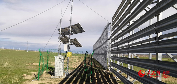 克塔鐵路線上設(shè)置的風(fēng)吹雪監(jiān)控設(shè)備。中國鐵路設(shè)計(jì)集團(tuán)有限公司克塔鐵路項(xiàng)目部供圖