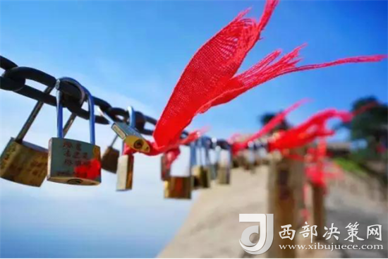在華山,最美好的是在金鎖關,將你我的名字用一把連心鎖鐫刻在一起,這樣我中有你,你中有我。
