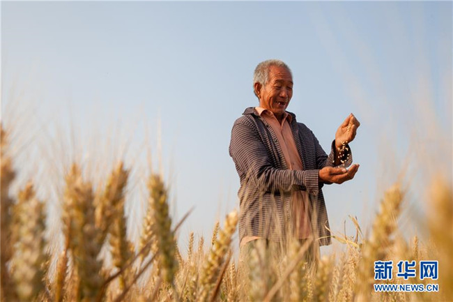 6月9日,農(nóng)民在山東省高青縣常家鎮(zhèn)劉春家村麥田里查看小麥成熟情況。 新華社發(fā)(張維堂 攝)