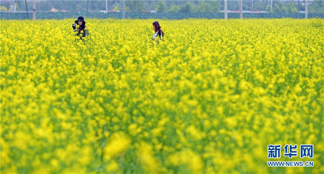 近日,在遼寧省沈陽(yáng)市沈北新區(qū)時(shí)空東街與蒲民北路交叉口附近,成片的油菜花競(jìng)相綻放,吸引眾多游客前來(lái)觀賞。 新華社記者 楊青 攝