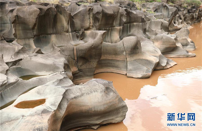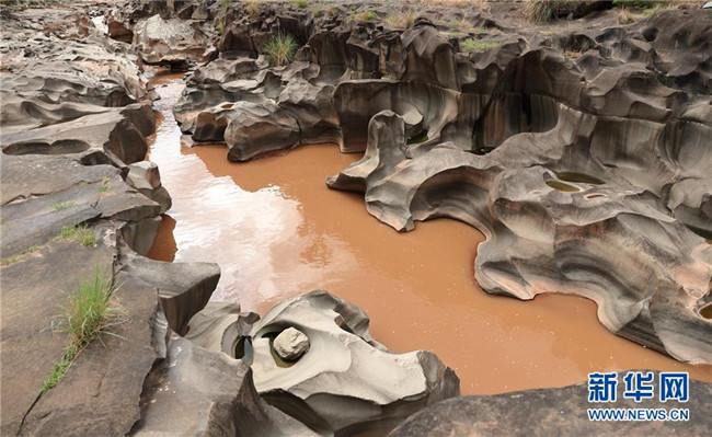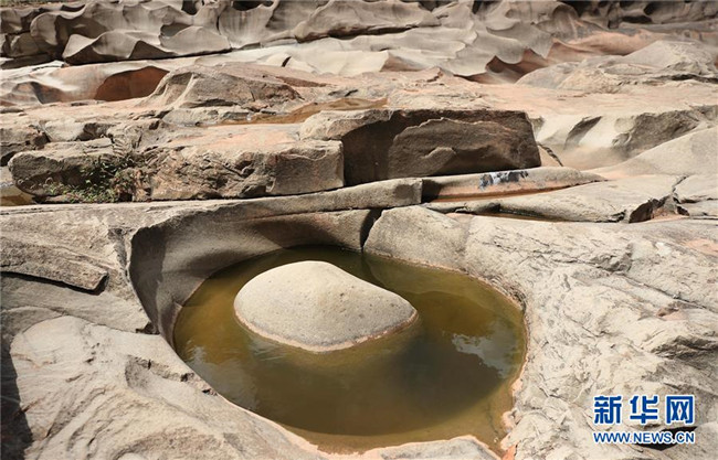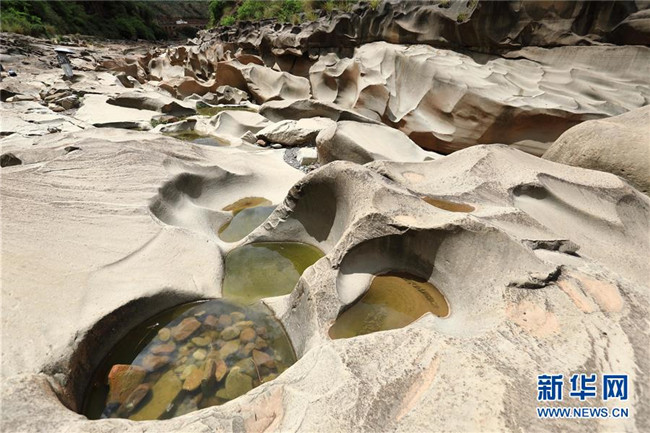 這是6月16日拍攝的四川省會(huì)東縣鲹魚河鐵柳鎮(zhèn)火石村段的壺穴地貌。新華社記者江宏景攝