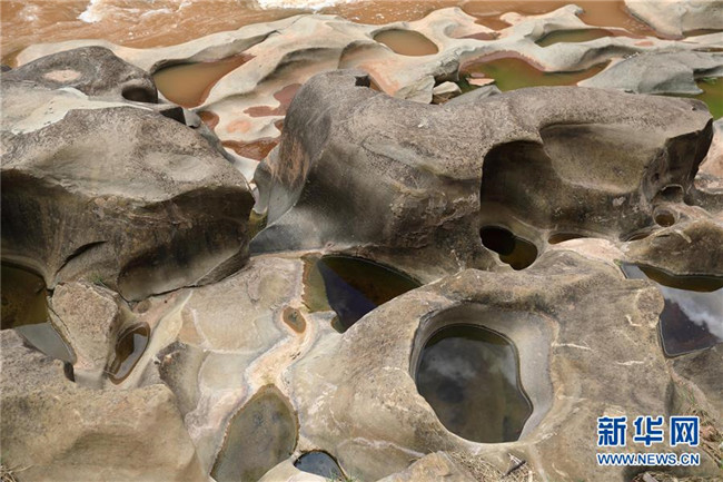 在四川省會(huì)東縣鲹魚河鐵柳鎮(zhèn)火石村段,河谷兩岸有一處壺穴地貌。2018年經(jīng)地質(zhì)專家勘測(cè),這處壺穴地貌河床寬約50米,面積約3萬(wàn)平方米。這里的壺穴大小不一、深淺不一,其范圍大、數(shù)量多、形狀美,極其罕見,吸引不少地質(zhì)專家和游客前來(lái)。新華社記者江宏景攝