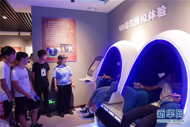 6月26日,在湖北省宣恩縣未成年人法治教育和禁毒警示教育基地,學生通過虛擬現(xiàn)實設備,了解吸毒駕駛的危害。新華社發(fā)(王俊攝)