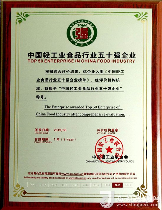 近日,由中國(guó)輕工業(yè)聯(lián)合會(huì)主辦,主題為“強(qiáng)化科技創(chuàng)新,服務(wù)美好生活”的“中國(guó)輕工業(yè)百?gòu)?qiáng)企業(yè)高峰論壇”在北京召開。會(huì)上,中國(guó)輕工業(yè)聯(lián)合會(huì)公布了2018年度中國(guó)輕工業(yè)食品行業(yè)五十強(qiáng)企業(yè),西鳳股份公司憑借良好的發(fā)展業(yè)績(jī)、市場(chǎng)口碑、行業(yè)競(jìng)爭(zhēng)力及日益增強(qiáng)的品牌影響力,被中國(guó)輕工業(yè)聯(lián)合會(huì)授予“中國(guó)輕工業(yè)食品行業(yè)五十強(qiáng)企業(yè)”榮譽(yù)稱號(hào),并受到表彰獎(jiǎng)勵(lì)。