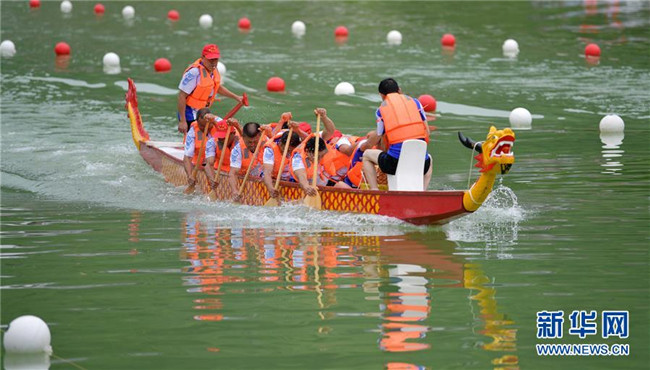 6月30日,龍舟隊在湖北恩施龍馬風(fēng)情小鎮(zhèn)進行比賽。新華社發(fā)(楊順丕 攝)