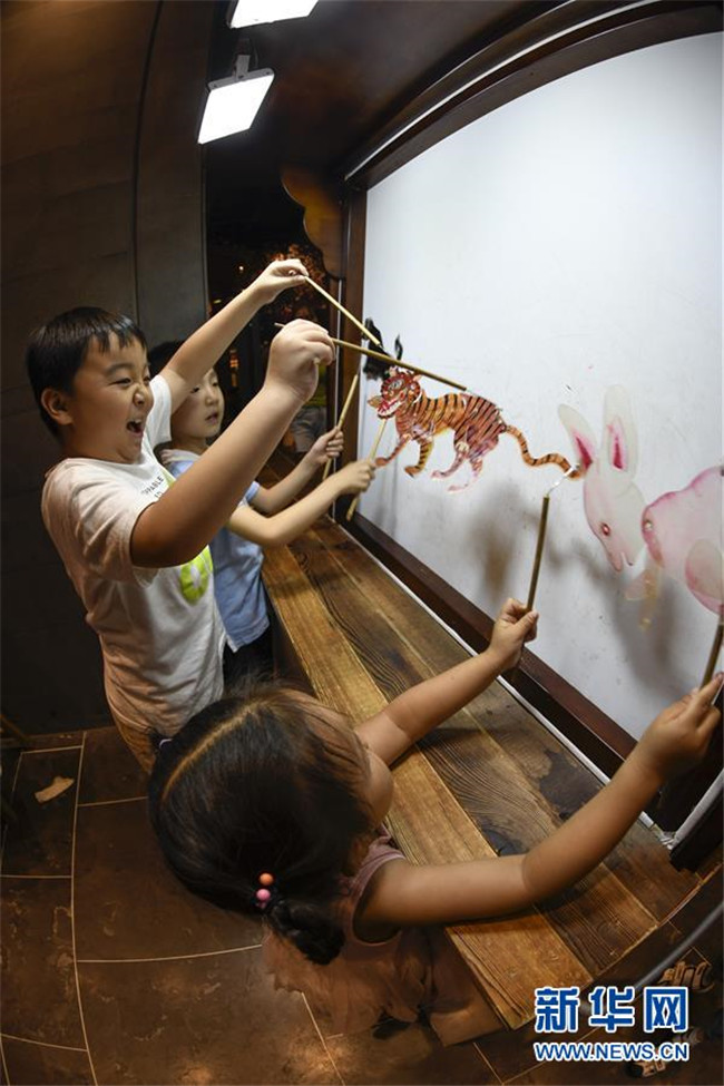 6月30日,小朋友在河北唐山一家博物館體驗灤州皮影。新華社發(fā)(劉滿倉 攝)