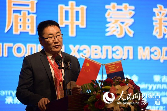 蒙古國記協(xié)代主席巴特巴特爾致辭。陳立庚 攝