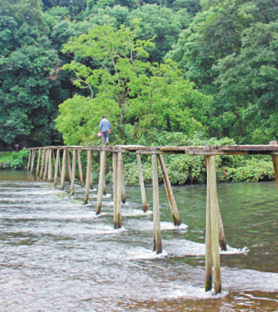 橋面斑斑點(diǎn)點(diǎn),青苔悄悄爬上碗口粗的圓木樁。河水湍急,任憑浪花拍打,這座坐落在貴州黎平縣高屯村少寨的老木橋(見圖。本報記者程煥攝),歷經(jīng)85年風(fēng)雨,依舊保持著當(dāng)年的模樣。